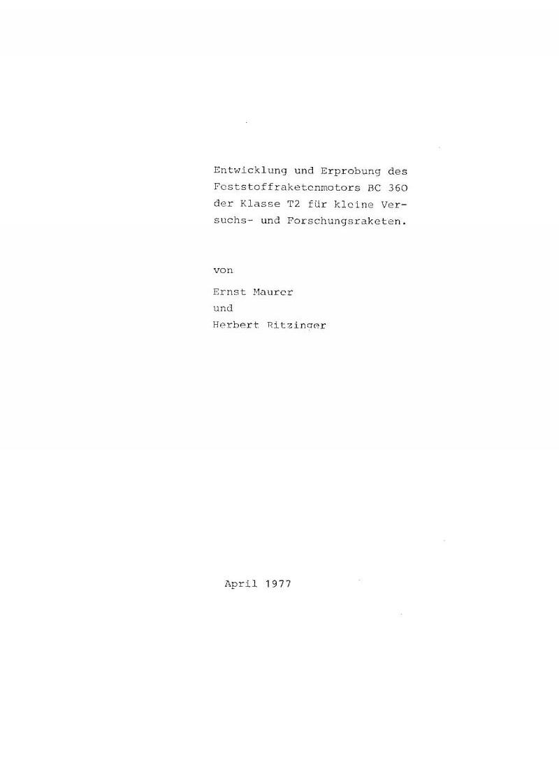 Entwicklung & Erprobung des Raketenmotors BC 360