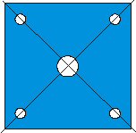 Dieser Schirm wird wie der Viereckschirm aufgebaut, jedoch bekommt er 4 Zusätzliche Leinen die am Rand zwischen den Eckpunkten liegen. Das Loch zur Stabilisierung in der Mitte entfällt.