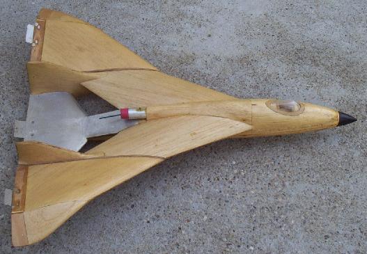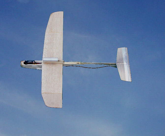 Das Teil hier gibt`s als einfachen Wurfgleiterbausatz von Graupner. Weiss grade leider den Namen nicht mehr. Mit ein paar zusätzlichen Balsaleisten/Brettchen und einer Verstätkung des Leitwerksträgers wird ein lustiger Raketengleiter daraus. Das Gewicht beträgt mit RC u.Akku nur 90 Gramm. Fliegt schön mit einem Held 1000. Startet zwar nicht senkrecht aber immerhin. Der Bausatz kostete unter DM 20.-
