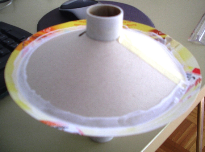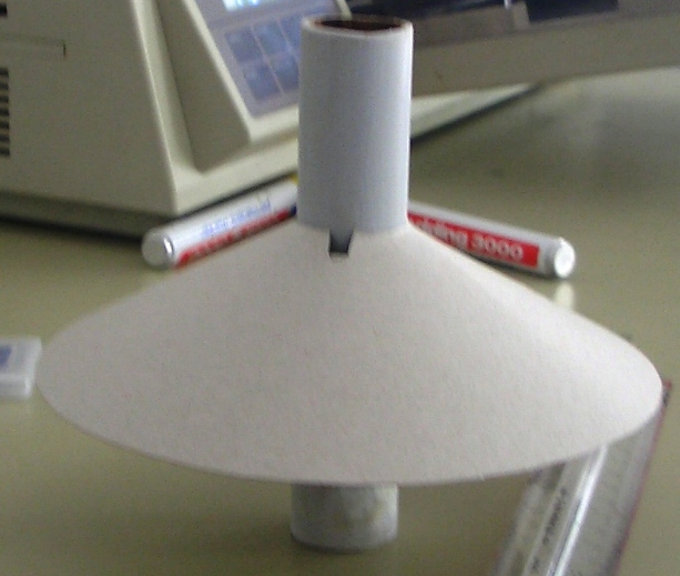 Soweit ich weiß fliegt das Teil allein durch seine Aerodynamik.... Den plan habe ich von http://www.artapplewhite.com unter free stuff, einfach upgescaled. Im TRF habe ich gelesen das ein Ufo immer stabil fliegt wenn der "Trichter"(also alles bis auf das rohr) 3mal so breit ist wie hoch