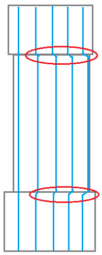 Ich bezweifle, dass Köperbindung (nicht Körper-) hier weiterhilft. Zunächst könnte man ja meinen, dass die Stufe zwischen Zusatzring und normaler Flasche das Problem ist, und dieser Absatz einfach zu groß. Ich hab bei Deinen Bildern allerdings eher den Eindruck, dass der Umfang an den Stellen mit den Zusatzringen größer ist als dazwischen, und sich die Glasfaser in diesen Bereichen dann wellt, um die gleiche Länge Glasfaser auf einem kleineren Rohr unterzubringen. Wenn Du das vermeiden möchtest, müssten sich die Fasern nach und nach auf dem Zwischenbereich verschieben und Du bekommst im Bereich des Absatzes Knicke in den Längsfasern. Das kann nicht besonders gut funktionieren.