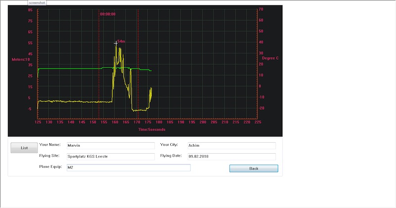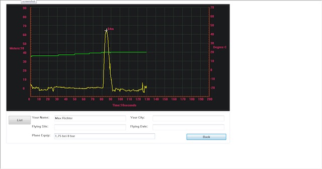 Über die Sample-Rate ist dort also nichts gesagt. Implizit wurde aber auch eine Ausgabe der Höhe - nicht nur des Peaks - durch den Höhenmesser angenommen. Würde man nur den höchsten Wert betrachten, wäre das angesichts der fehlenden Glättung in der Flugkurve wohl nicht sehr fair anderen gegenüber.