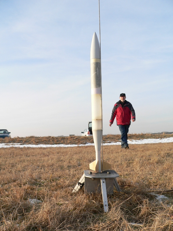 Vielleicht liegt es daran, dass ein klein bisschen schwererer Stein weiter fliegt, als ein leichterer  Wäre mal interessant das herauszufinden. Im Bild kann man gut im Gegenlicht den Kolben und den Fallschirm im fast durchsichtigen GFK-Rohr erkennen. @ all: Hätte da mal eine Frage betr. MiniSalt: Wenn der Salt nicht exakt zur Ausstoßladung hermetisch abgedichtet ist, kann er da durch die Ausstoßladung Schaden nehmen? Ciao, Rolli