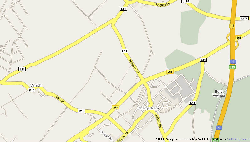 2. Man verläst die A1 an der Abfahrt 111 "Wißkirchen" in Richtung Westen (Obergartzem). Die von Köln kommen biegen nach der Abfahrt rechts ab.