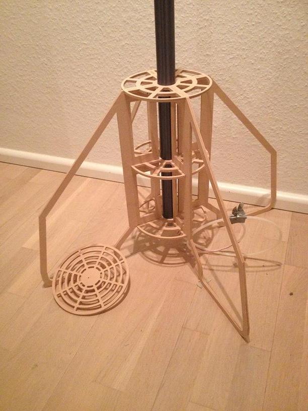Auf den geschlitzten Ring unten kommt ein kleiner Heizlüfter, der den Hybridtank auf Temperatur hält. So ist der volle Druck beim Start da.