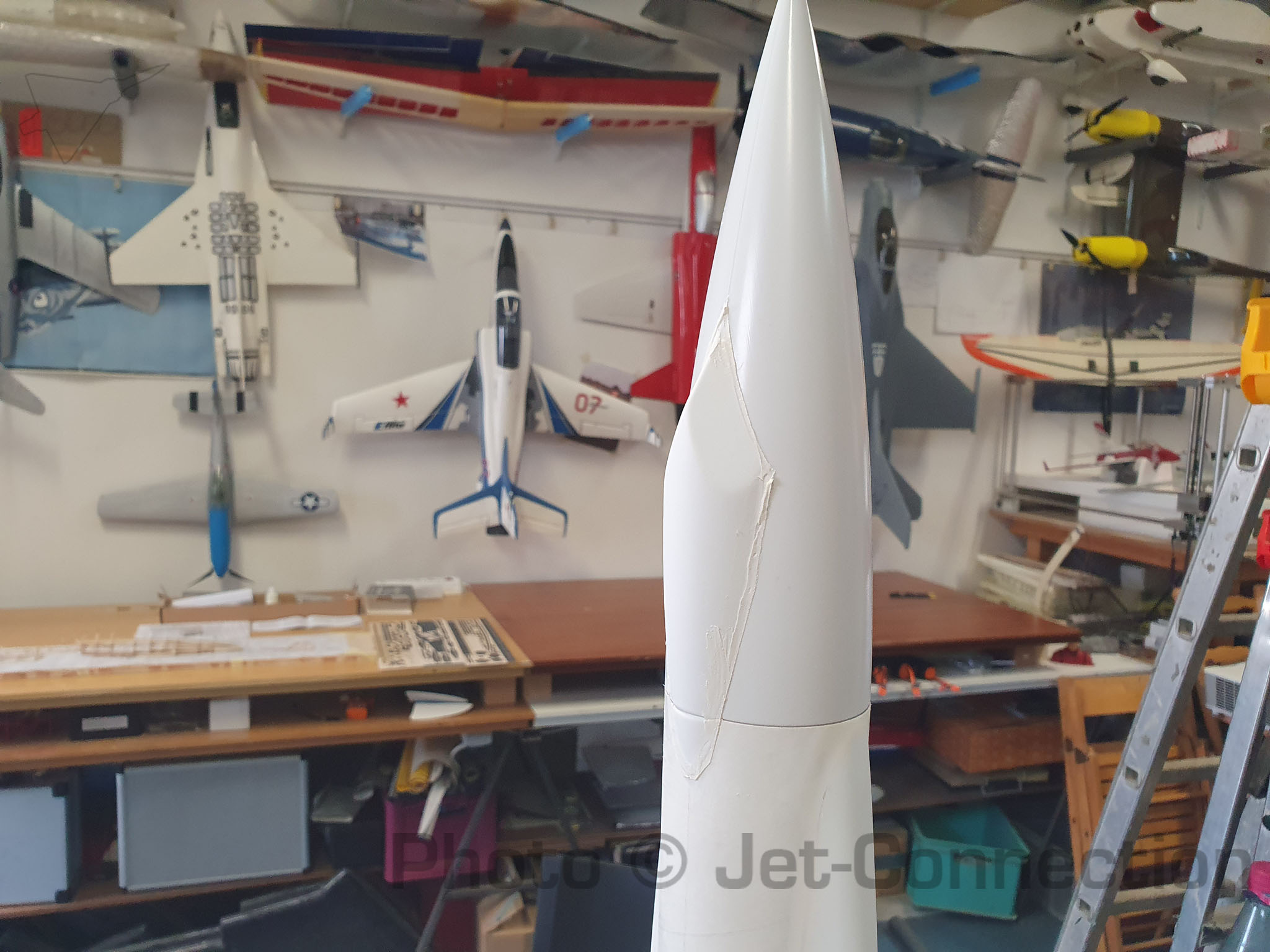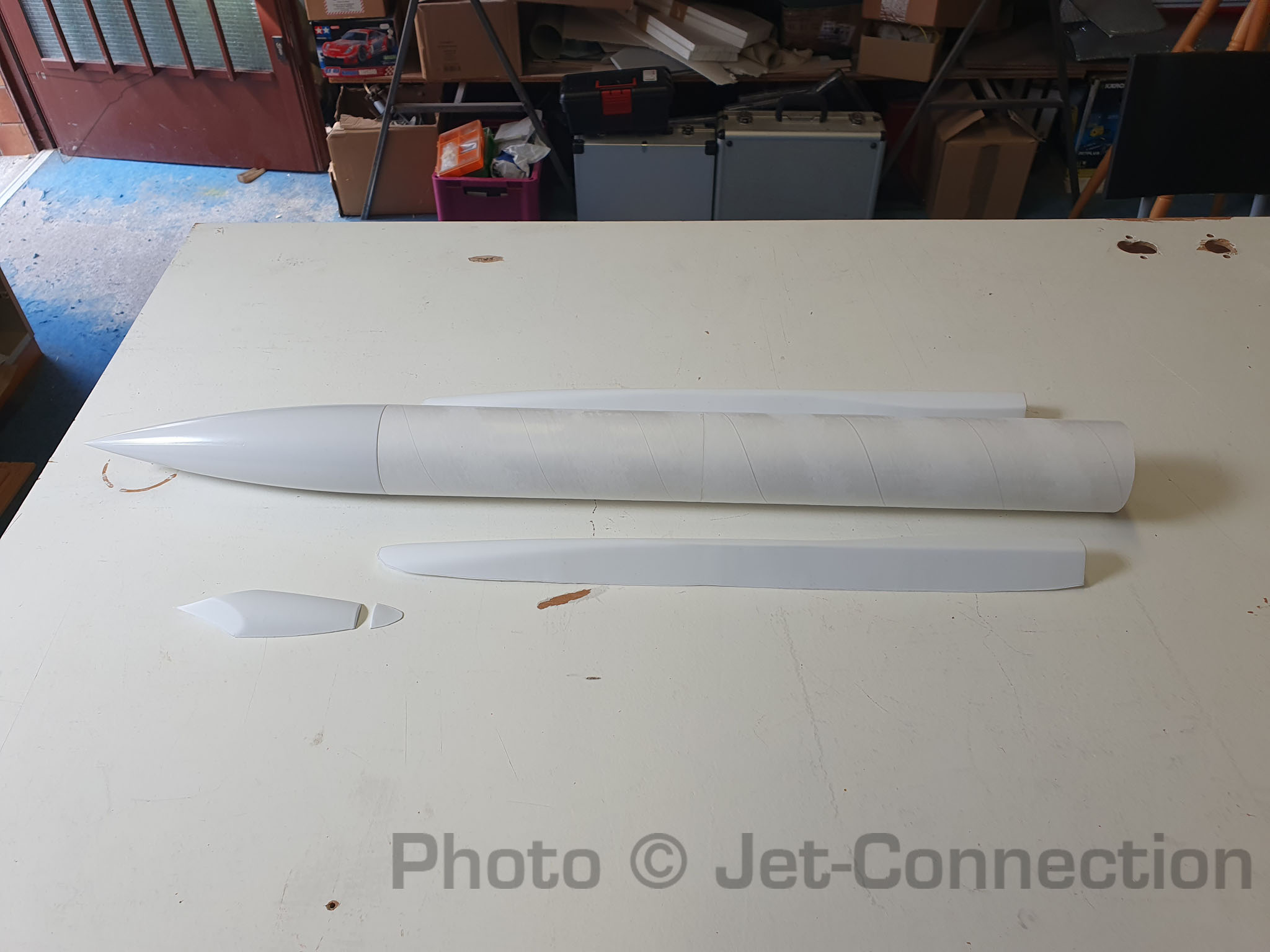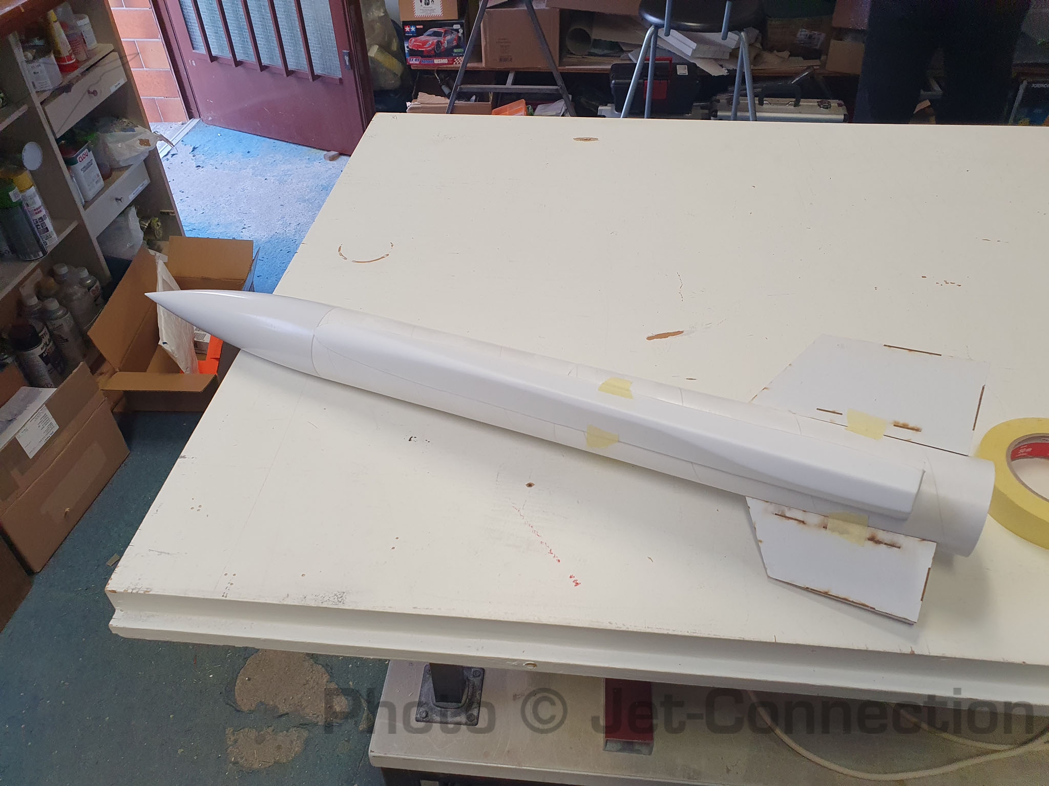 Ich werde wohl ein wenig Porenfüller brauchen um einige Bereiche des Körperrohres und der Finnen zu behandeln da teilweise leicht durchgeschliffen wurde.