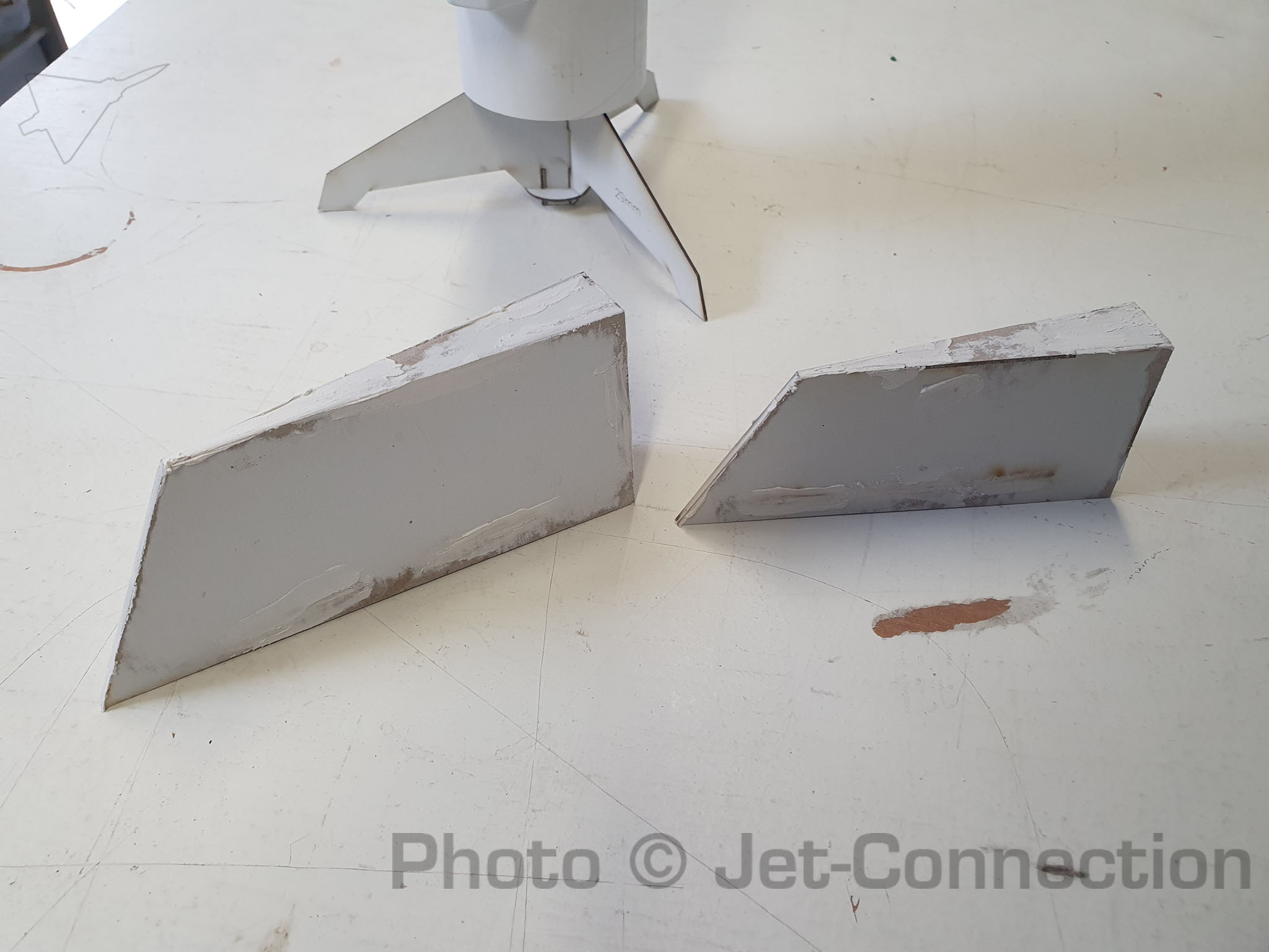 Die Seitenleitwerke sind das erste Mal mit Spachtel behandelt worden.