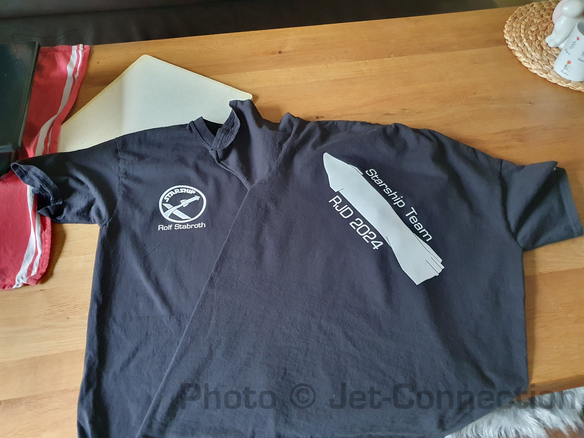 Felix: Ich hab das leicht defekte Flock noch (Das abgetrennte Beinchen). Soll ich Dir das mitbringen? Das kannst mit nem Bügeleisen selbst noch irgendwo draufdrücken wenn Du magst.