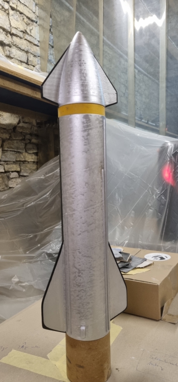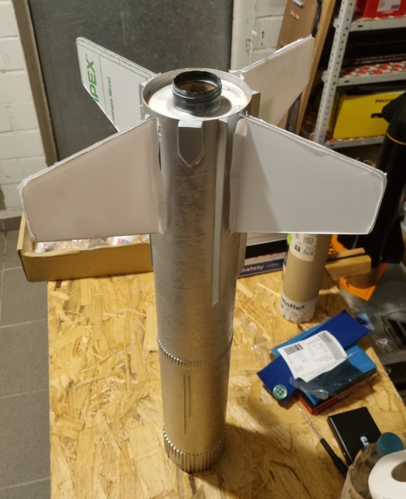 Äußerlich ist alles fertig...jetzt kommen noch 250 gr Blei in die Spitze und das gute Ding sollte auf ein Kaliber von knapp über 1,5 mit nem 38/240-Motor kommen.