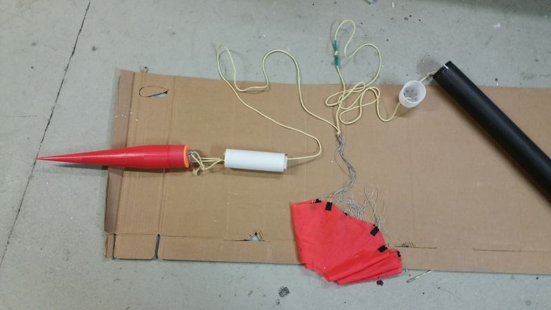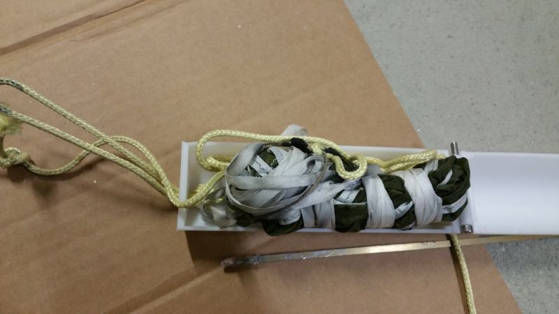 Bei erreichen der Mindesthöhe drückt der SN0 den Bolzen aus der Halterung und der Fallschirm wir freigegeben.