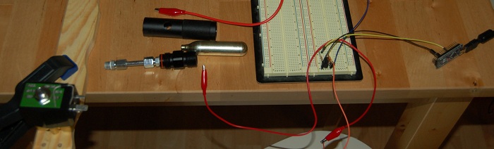 habe ich heute auch die China-Magnetventile getestet. Im Moment kommen ca. 16 Stöße à 100 ms aus einer 12 g-Patrone. Mal sehen was Patronenheizung und Verkürzung der Stöße noch daran ändern. Hier die Reste vom Versuchsaufbau: