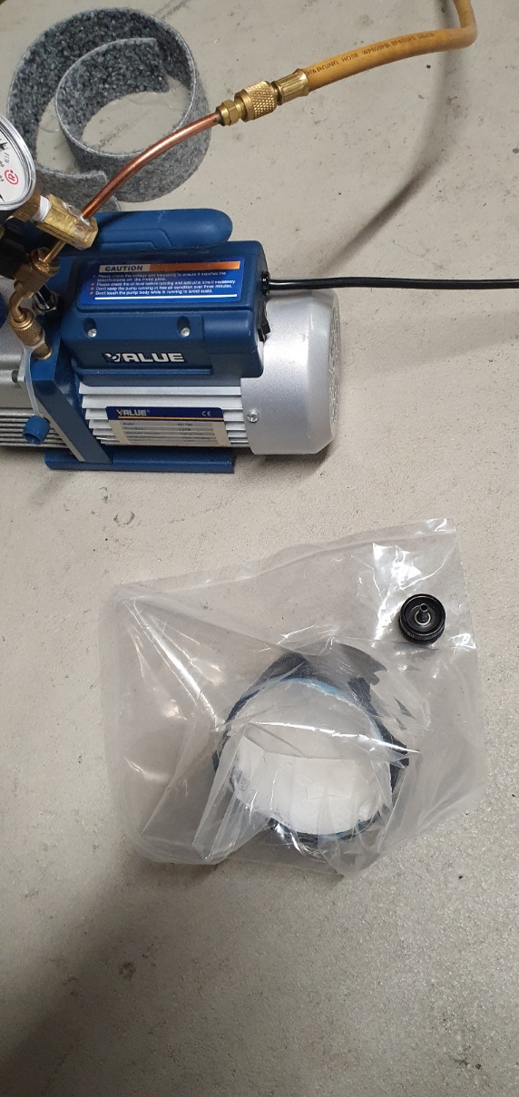 Der ganze Kram kommt jetzt in den Bag und die offene Seite wird zugeschweißt. Dann Vakkum anlegen und das ganze bei 42 Grad übernacht aushärten lassen.
