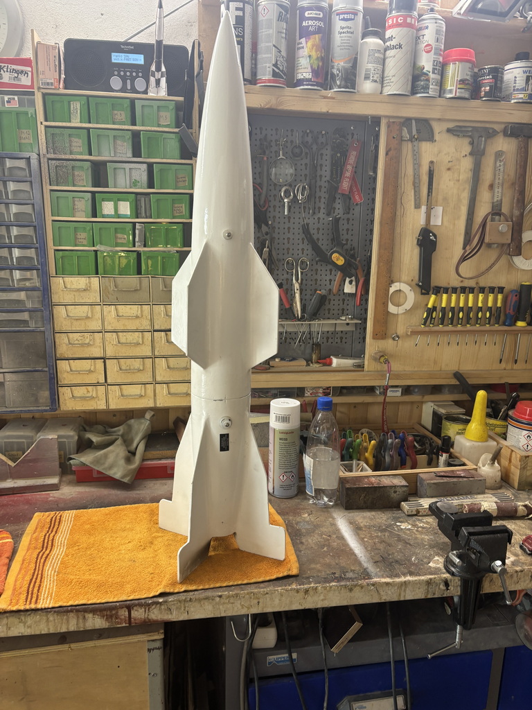 Fast wäre es vor ein paar Tagen bei mir in Meiner Werkstatt zur Katastrophe gekommen als ein riesengroßer Baum auf meine Garagenwerkstatt stürzte. Ist aber zum Glück 1m dahinter aufgekommen. Bei meiner letzten Rakete (Wasserfall) habe ich Achims Namensidee aufgegriffen und eine Friedenstaube draufgepappt.  Ciao,Rolli