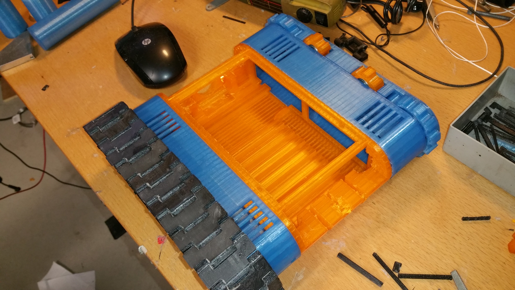 Der Rover ist mein bisher größtes Projekt. Die gesammte Druckzeit liegt weit über 50 Std. Als Material habe ich bei den bunten Teilen PLA und bei den schwarzen ABS genommen.