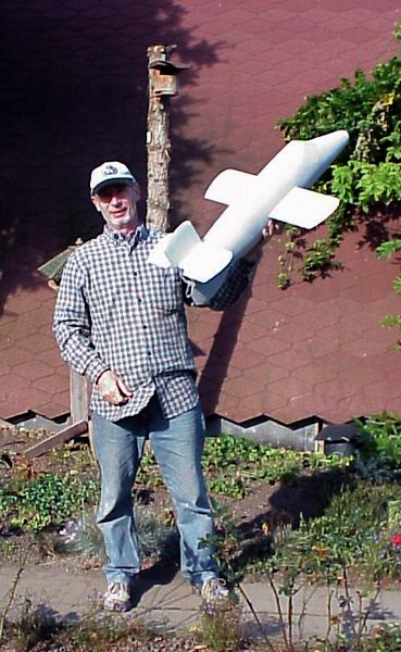 Das Gewicht wird noch zunehmen! Wenn ich die Boosteratrappen und den Motor dazurechne brauche ich wirklich viel Gegengewicht in der Spitze um den Schwerpunkt am Rande der Vorderflügel halten zu können. Ich schätze, dass da das Gesamtgewicht inklusive Fallschirm, Elektronik, Battarien etc. vielleicht sogar die 4 Kg Grenze erreichen wird. Also da wird einem schon etwas mulmig.