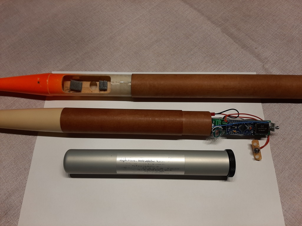 Achim's Telemetriesender passt perfekt in das 29mm Körperrohr einer Minimal Durchmesser Rakete...smile !