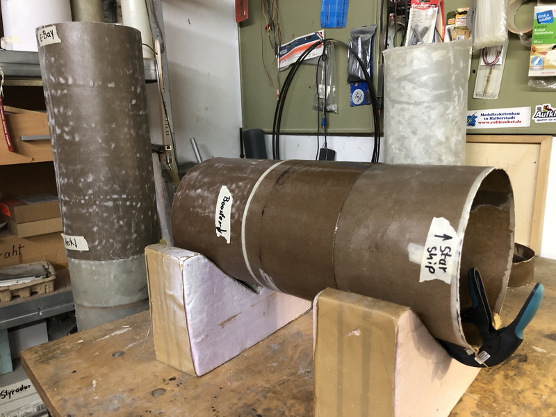 Jetzt sind die Kuppler eingeklebt und angepasst. Auf den äußeren Teil können dann die entsprechenden Stringers und die Grin Finns angebracht werden. Wenn die Stringers auf einer 1mm Grundplatte gedruckt und aufgeklebt werden, dann passt die Stärke zu den angekuppelten Tuben.