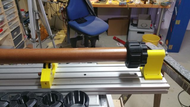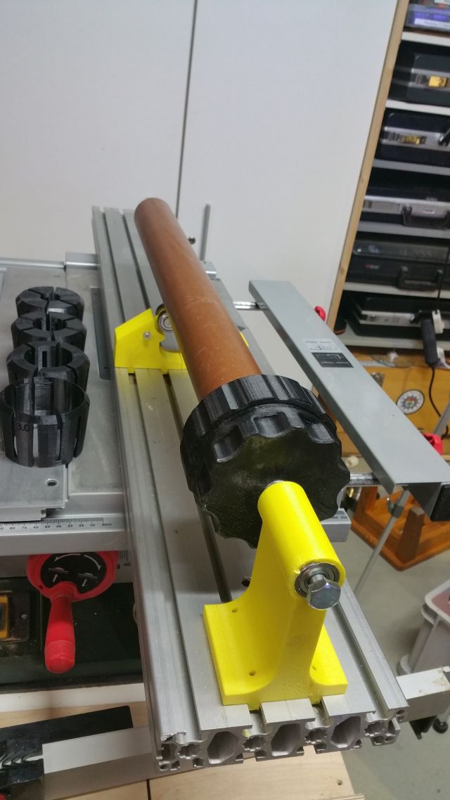 habe ich angefangen ein Rohr-Bearbeitungstool zu bauen. Es ist immer ein Problem lange Teile / Rohre vernünftig zu spannen um sie zu sägen , bohren oder ein zu Schlitzen. Ich schick Euch einfach mal die Bilder. der Rest erklärt sich von selbst.