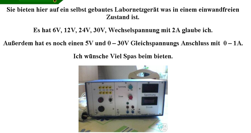 Zudem würde ich mir ansonsten Das Gerät von Polin holen für 35,90€ 0-30V 0-2A regelbar.